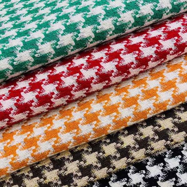 Polyester Shiner Knitting Houndstooth Suit Tweed Wool Fabric Stock
